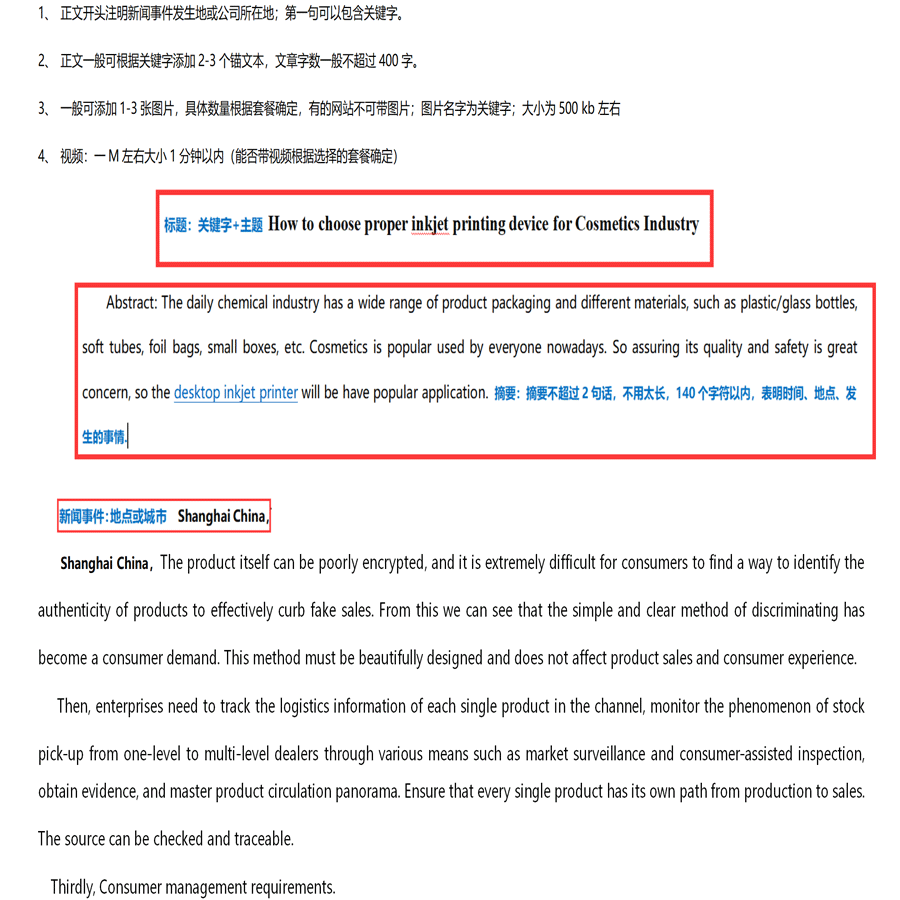 國外媒體的廣告投放不同于國內的媒體,請按下面的格式把文檔重新整理后發給客服,謝謝。內容必須是合法、正規;反動、暴力、時事、黃色、醫療、藥品、保健品等一律不發;稿件發布時間將在提交廣告內容后 須經媒體編輯審稿,審稿通過后將在24小時內發布。發布媒體、發布內容、發布要求請在下訂單后在廣告發布后臺進行確認,提交后不能修改。